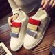 新款小白鞋女松紧带套脚低帮休闲鞋春夏透气板鞋厚底增高学生单鞋
