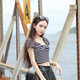 Ade独家定制 香港 黑白条纹!蝴蝶结打底T短上衣 全店两件包邮