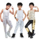 演出服男童舞台架子鼓儿童街舞歌手表演亮片短袖柳钉马甲皮裤套装
