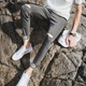 2017夏季浅色破洞牛仔裤男黑九分裤薄款修身小脚潮流灰裤子男学生