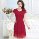 2017新款中年妈妈夏装蕾丝短袖连衣裙中老年女装大码中长款40岁50