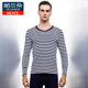 帕兰朵保暖内衣男套装薄款青年横条纹莫代尔面料棉质秋衣秋裤修身