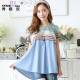 孕妇装夏装2017新款潮妈假两件背心薄牛仔中长款连衣裙夏季短袖