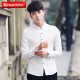 春季新款衬衫男长袖修身型小立领韩版青年男士休闲纯色白衬衣男潮