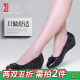 路施南真皮工作鞋女黑色职业鞋女圆头工鞋平底空姐鞋浅口软底单鞋