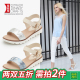 【买一送一】路施南简约真皮凉鞋平跟大码孕妇凉鞋女夏季平底防滑