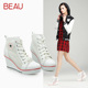 BEAU春季高帮帆布鞋女网纱内增高休闲鞋系带坡跟单鞋女高跟女鞋