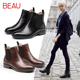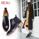 BEAU春季切尔西短靴女平底真皮马丁靴女英伦风及踝靴粗跟女靴子