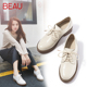 BEAU夏季新款英伦小皮鞋圆头系带百搭深口单鞋平底复古学院风女鞋