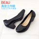 BEAU真皮工作鞋女黑色平底空姐鞋软底圆头皮鞋工鞋职业浅口单鞋
