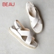 BEAU2017新款凉鞋女夏交叉带真皮松糕凉鞋女厚底罗马休闲平底凉鞋