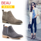 BEAU秋冬磨砂皮短靴女加绒切尔西靴女粗跟马丁靴女英伦风短筒靴子