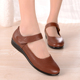 春季中年皮鞋女中老年人鞋子坡跟女鞋中跟软底防滑妈妈鞋真皮单鞋
