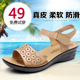 2017夏季新款真皮休闲软底坡跟大码防滑中老年妈妈女凉鞋女鞋