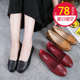 妈妈鞋春季真皮单鞋子软底坡跟女鞋平底女士皮鞋浅口工作鞋女单鞋