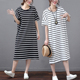 2017韩版新款大码中长款条纹打底裙 宽松上衣纯棉圆领短袖T恤女潮