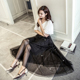 2017夏季时尚钉珠网纱裙半身裙长裙A字裙 黑色松紧腰纱网裙长款