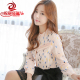雪纺衬衫女韩范2016修身气质蕾丝花边打底衫长袖时尚女装上衣立领