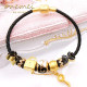 onemei 黄金3d足金钥匙同心锁手链配饰一套首饰送黑色单皮绳直营