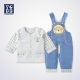 英格贝贝0-1岁男女宝宝纯棉春装童装背带裤套装婴儿外出服两件套