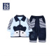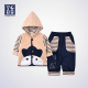 英格贝贝2017新款0-1岁男宝宝春装薄款双层纯棉套装婴儿外出衣服