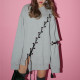 2017春款上新韩版百搭不对称镂空绑绳宽松大码套头卫衣女