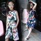 童装女童2017夏季新款印花卡通无袖上衣休闲短裤中大童套装