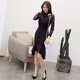 2016新款秋装连衣裙旗袍设计女人味优雅包臀修身打底长袖小黑裙