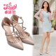 卓诗尼2017春季新款单鞋铆钉高跟鞋细跟一字扣尖头女鞋夏罗马凉鞋