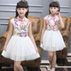 女童连衣裙2017新款童装舞蹈裙夏装儿童青花瓷纱裙女孩蓬蓬裙子