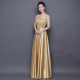 春2017新款挂脖晚礼服修身主持人宴会晚装长裙女长款金色敬酒服女