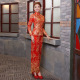 2017新款唐装夏春季新娘中式结婚礼服长袖长款红色旗袍裙敬酒服女