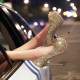 春季欧美2016新款细跟超高跟鱼嘴防水台亮片女鞋性感夜店凉鞋