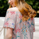 纳纬夏季新款荷叶边露肩上衣女甜美碎花一字领宽松短袖雪纺衫