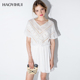 好衣汇2017夏装新款女装白色V领雪纺a字连衣裙女甜美蕾丝缕空短裙