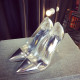 2017春夏季高跟鞋细跟尖头白色性感裸色透明浅口中跟黑女单鞋百搭