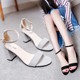 欧洲站夏季新款明星款女鞋中跟露趾黑色性感一字带扣粗跟高跟凉鞋