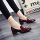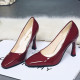 欧美四季方头高跟鞋韩版女鞋浅口粗跟高跟鞋红色婚鞋新款漆皮单鞋