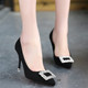春秋新款韩版潮时尚性感尖头高跟粗跟水钻方块扣OL甜美单鞋女鞋