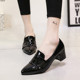 2016秋冬新款女单鞋深口女尖头粗跟工作鞋黑色单鞋绒面漆皮中跟女