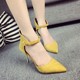 2016夏季新款粗跟中跟尖头女鞋绒面方跟深口韩版职业工作鞋OL单鞋