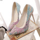 性感漆皮浅口圆头防水台超高跟细跟婚鞋单鞋四季41女鞋34大码42