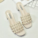 韩版气质名媛珍珠拖鞋时尚镂空罗马一字型沙滩凉拖欧洲站百搭女鞋
