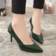 欧洲站2017春季新款尖头高跟V口细跟黑色浅口中跟性感绿色 女单鞋