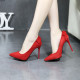 欧美尖头高跟鞋细跟性感浅口 韩国公主黑色绒面夜店单鞋婚鞋红色
