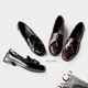 传祺家平底鞋女春秋2016黑白色浅口真皮单鞋百搭金属扣懒人乐福鞋