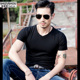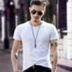 短袖t恤男士纯色v领夏季修身丝光棉半袖黑白上衣服体恤打底衫潮流