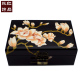 姚红饰品漆器玉兰牡丹收纳盒带锁首饰盒木质结婚梳妆盒礼品