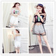 夏装新款韩版名媛气质网纱拼接系带修身上衣+半身短裙套装礼服女
