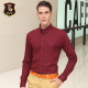 名度鸟春季新款男士长袖衬衫微领酒红色弹力修身型暗门襟衬衣男
